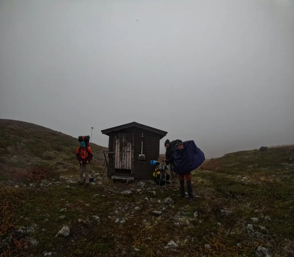 Na břehu řeky je opuštěný rybářský kemp Tjuonajakk a v dešti bereme za vděk jednou z otevřených starých hobitích chatek, která je sice plná myších bobků, ale pro čtyři packraftery znamená pohodlí pětihvězdy Ritz. Náladu nám zvedá teplá polévka a zpráva ze satelitního Garminu, že nadcházející dny by mělo být opět slušné počasí.