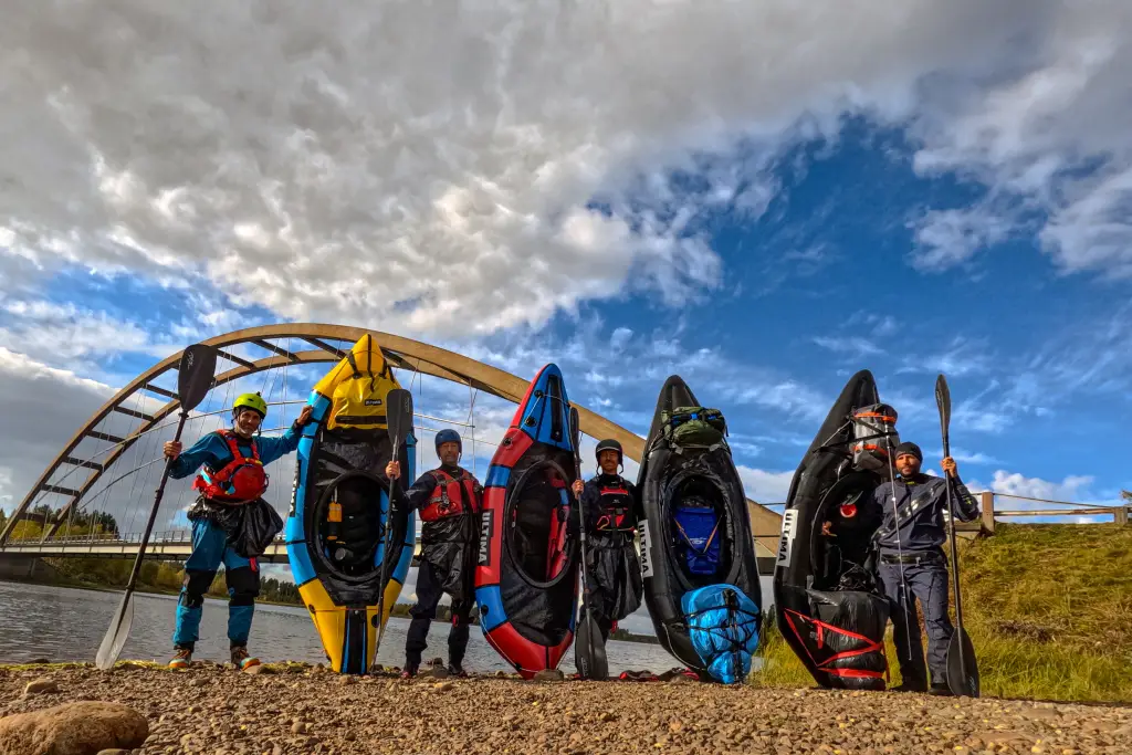 Složení skupiny a jejího vybavení je pestré. Jsou tu ostřílení packrafteři Piskin a Bluebell, kteří neúnavně testovali od zimy různé myslitelné setupy, až si nechali ušít na míru jejich proporcím packrafty Ultima Eddy HC s Tizipem. Na rozdíl od nich Lukáš a Jarda seděli na packraftu jednou v životě a bagáž vezou v batozích zabalených do igelitových pytlů na palubách packraftů Ultima Eddy. Pak jsem tu já testující loď Voyager s Tizipem, která má být určena do budoucna právě na podobné štreky – je lehká, hodně uveze a v pohodě zvládne těžší divokou vodu, které je před námi opravdu dost. A pak je tu Petr, který se na rozdíl od nás čtyřicátníků narodil dříve, než Zlín přejmenovali na Gottwaldov, a jestliže v padesáti skákal vodopády na Korsice, dnes se vydává v třiasedmdesáti na cestu, které se díky svému věku krapet obává.