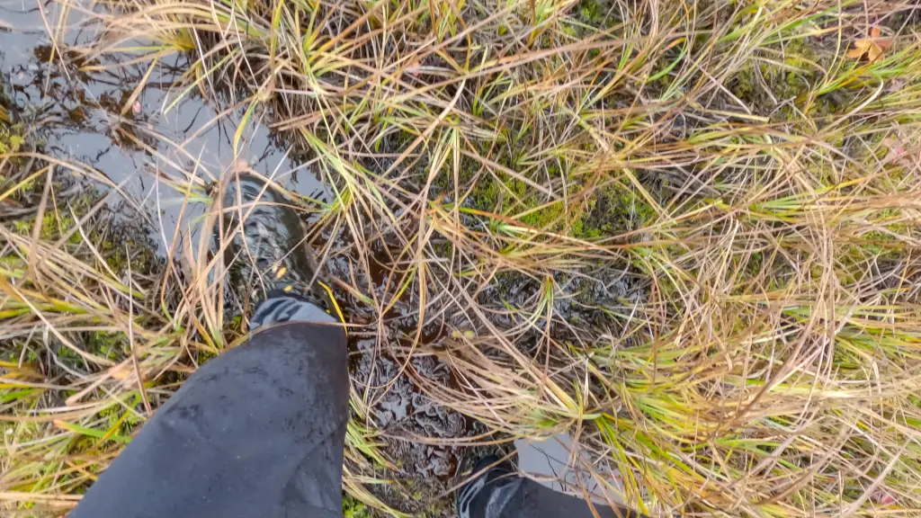 Jarda hledá cestu co nejsušší nohou v bažinách nad řekou